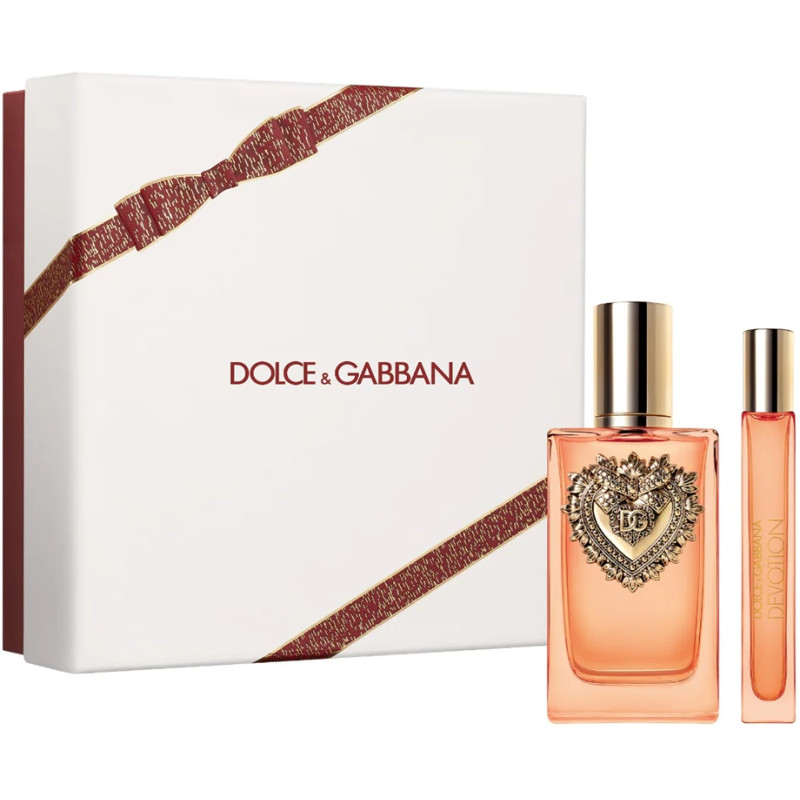 Un coffret cadeau qui évoque un charme raffiné et enveloppant, mettant en valeur les notes lumineuses et gourmandes de Devotion Eau de Parfum Intense.