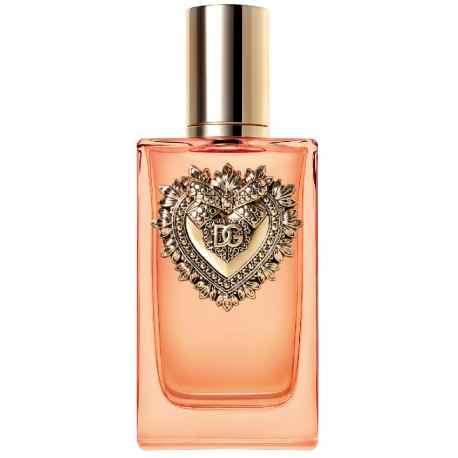 L'Eau de Parfum Intense Dolce&Gabbana Devotion est logée dans un flacon en verre teinté ambré vibrant magnifiquement orné du Sacré-Cœur, indéniablement symbolique.