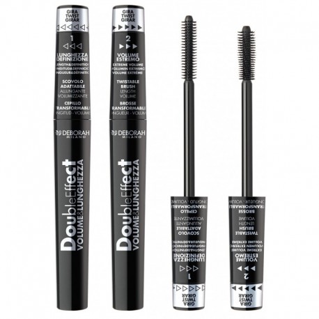 Le mascara Double Effet VOLUME & LENGTH, comprend une formule 2 en 1 et un applicateur novateur.